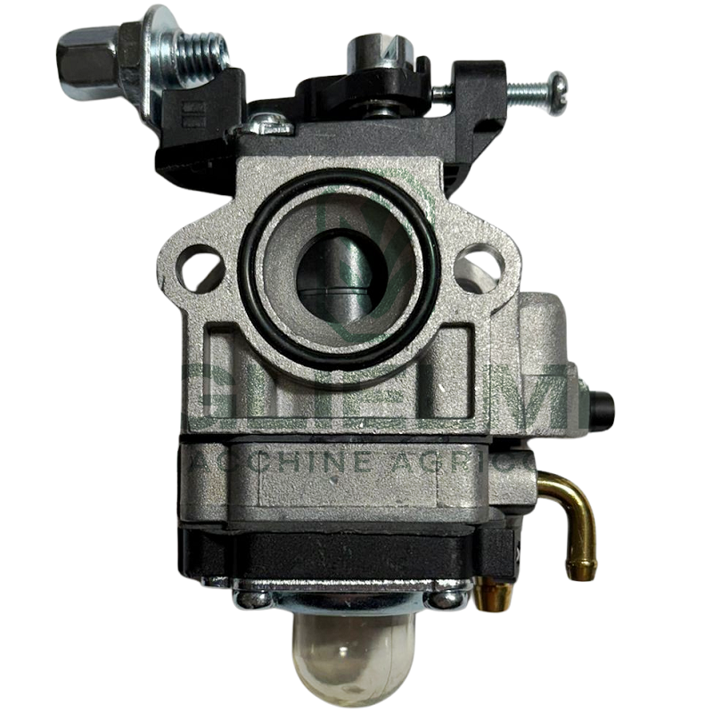Carburatore per decespugliatore progettato per garantire una corretta miscelazione tra aria e carburante, assicurando un funzionamento efficiente e regolare del motore. Questo componente consente avviamenti rapidi, una combustione ottimale e prestazioni costanti durante le operazioni di lavoro. Dotato di vite di registro per una regolazione precisa del minimo e della carburazione, rappresenta un ricambio adattabile ideale per decespugliatori utilizzati nel giardinaggio.