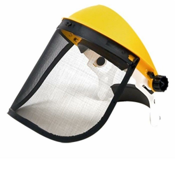 Visiera protettiva professionale con schermo in rete e ferma testa regolabile. CE: En 1731 EU2016/425.